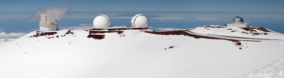 View of Subaru, Keck, and IRTF Observatories from Mauna Kea in Hawaii